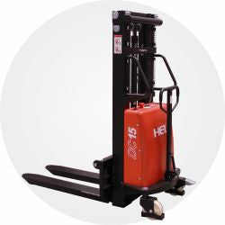 Ručne vedený vysokozdvižný vozík CBS15J s nosnosťou 1500 kg je vybavený ručným posunom a elektrickým zdvihom. Ponúka sa vo variantoch výšky zdvihu 2000 - 3000 mm. Má nastaviteľnú šírku vidlíc a je vybavený brzdou na pojazdovom kolese. Napája sa pomocou batérie 12 V/120 Ah.