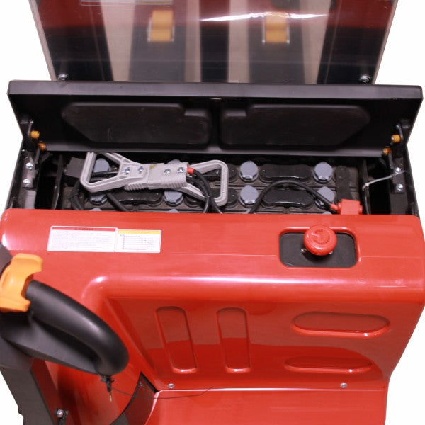 Ručne vedený elektrický vysokozdvižný vozík o nosnosti 2000 kg a výške zdvihu 2000 mm.